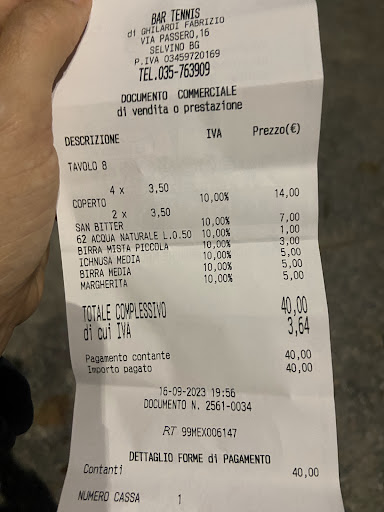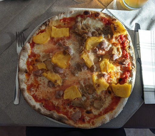 Read morePizza sottile e croccante, di solito faccio fatica a finirla ma questa l'ho divorata (montanara = pancetta, salsiccia e taleggio). Personale pronto e affabile. Poca scelta oltre al menù.. Però! Prendono i casoncelli freschi, li avevano finiti e lo chef si è offerto di farli al momento.. Sarà un caso?? Boh. Non saprei dire, però è stato un bel gesto, sono arrivati poco dopo le pizze ed erano buoni! Hanno pizza senza glutine se serve, prodotto surgelato chiaro, ma cotto nel suo forno e proposte alternative ma a pranzo.. Di solito è il contrario..! Si sta bene, sono gentili, simpatici e professionali. Basterebbe poco per renderlo uno dei posti top di Selvino ma arranca.. Lo conoscono i locali, nonostante tutti sappiano dov'è il "tennis". Da provare. Dategli una chance e non ve ne pentirete, ottima pizza, e anche per il prezzo che giustifica qualche manchevolezza. Ha potenziale. Forse lo esprime...