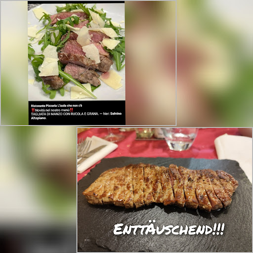 Read moreWir haben uns für das Restaurant entschieden, einerseits wegen der Rezessionen und auch, da es noch ein separaten Spielraum hatte für Kinder. Ich frag generell, wen ich in einem fremden Ort gehe und die Bezeichnung gewissen Teller im Menü nicht kenne was es ist. Eigendlich hatte ich Kalbsnuss mit Gemüse bestellt Medien. Als sie uns das essen brachte war es so dünn geschnitten dass das Fleisch zu durch war sprich trocken. Sie nahmen es ohne Widerspruch zurück und ich durfte was anderes nehmen. Hab mich für "La aTagliata 250g mit Rucola und Grana" medium entschieden... Die Bilder sprechen für sich selbst! KEIN RUCOLA&GRANA und KEINE 250G!!! Leider auch das war zu durch gleichzeitig trocken. Deswegen ist meine...