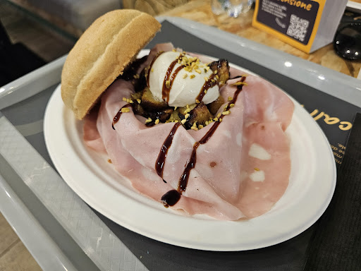 Io ho preso la Bol "Amor(tadella)", con al suo interno mortadella, patate, pesto di pistacchi, burrata e glassa di aceto. Era buonissima, l'accostamento di ingredienti era azzeccato e anche il pane era di qualità.