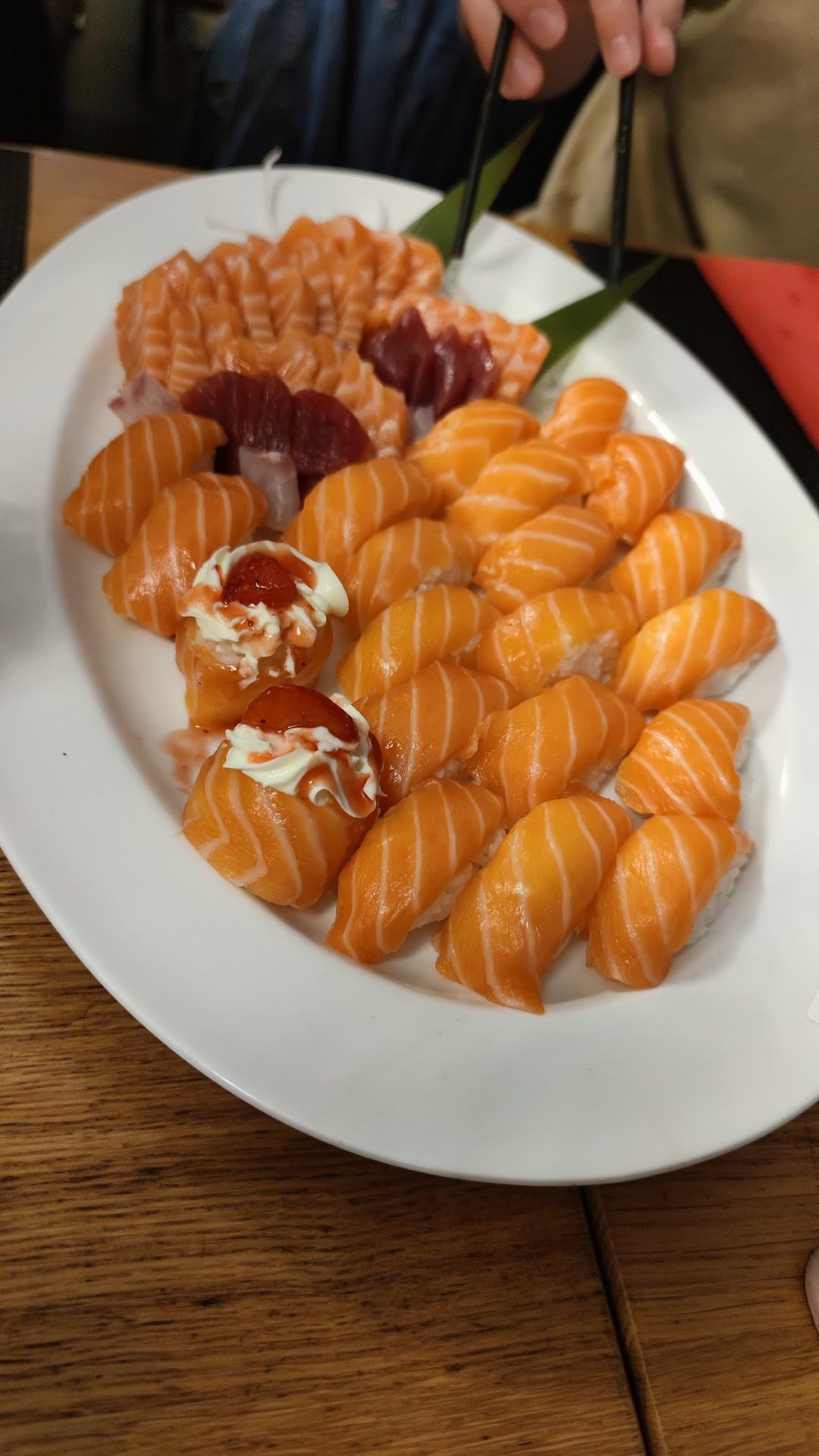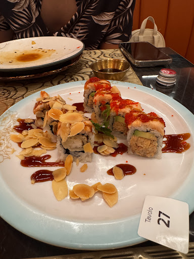 Read moreAbbiamo scelto questo ristorante l’altra sera perché erano le 22 e cercavamo un posto che chiudesse tardi per stare tranquilli, visto che dovevamo cenare. Su Maps risultava (e risulta ancora) che loro chiudano a mezzanotte, ci siamo seduti alle 22:15 e hanno iniziato da subito a mettere fretta, appena seduti ci è stato avvisato che in mezz’ora la cucina avrebbe chiuso, cosa assurda perchè posso capire chiuderla mezz’ora prima dell’orario di chiusura ufficiale, ma più di 1 ora prima mi pare eccessivo, e già lì, a subire tutta questa pressione addosso a ordinare e mangiare velocemente volevamo alzarci e andarcene ma avevamo fame e abbiamo sperato almeno nel cibo buono, viste le recensioni e invece: nulla di più sbagliato. Porzioni di pesce crudo minuscole e dalla qualità dubbia, tutto salatissimo, le porzioni di pasta invece erano abbondantissime e la cosa mi è sembrata poco equa, visto che il pesce nei piatti scarseggiava. A 14 min dalla chiusura della cucina decidiamo di ordinare le ultime cose e anche lì, cameriere che ci urlava contro che in 2 minuti non si poteva più ordinare nulla. Mi arriva una tartare che non so nemmeno se definirla tale: letteralmente 10 cubetti minuscoli di salmone e 3 di avocado, prendeva 2 dita della mia mano, porzione inesistente! 26,90€ di all you can eat: soldi assolutamente ingiustificati per la qualità e il trattamento ricevuto. Sconsigliatissimo, piuttosto andate al Mc...