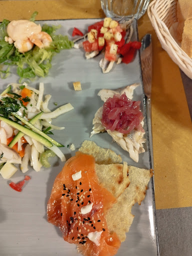Read moreCucina discreta ma menù poco veritiero (filetto di spigola in pastella spacciato per filetto grigliato). Le note dolenti però sono il servizio e la cortesia; sono rimasto 15 minuti in piedi ad attendere che il mio posto venisse ripristinato, dopo che l'unico cameriere (!!!!) aveva appena rovesciato accidentalmente, sul tavolo e su di me, un intero bicchiere di vino. Dopo aver fatto notare la cosa ad una titolare e senza creare alcun problema per le noiose macchie su camicia e pantalone, la stessa ha iniziato a servirci con arroganza e sufficienza, quasi come se la colpa fosse stata mia. Morale della favola...neanche il gesto di offrire un misero caffè, dopo una cena per 4, a base di pesce... Consiglio una ripassata al manuale della ristorazione e un bel...