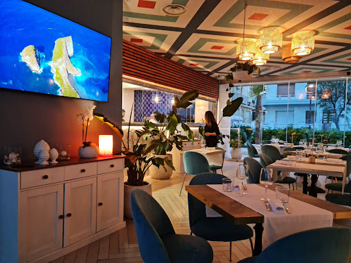 Avevo letto alcune recensioni negative su questo ristorante, ma per fortuna non ne ho tenuto conto. Si sa che quando qualcuno spende un tantino di più, si fa prendere la mano con un punteggio al ribasso. Io, invece, lascio il mio parere più che favorevole con 5 stelle anziché 4 (il vero punteggio che avrei dovuto lasciare) perché comunque ho trascorso una serata molto piacevole. Parto dalla location: bellissima, con vista mare e vetrate enormi che lasciano intravedere la spiaggia che d'estate verrà sicuramente presa d'assalto. Sedute comodissime, texture del soffitto in pandant con le salviettine per le mani e con il menù, tavoli molto belli e illuminazione perfetta per una serata romantica ma anche per un aperitivo con gli amici. Il mangiare: abbiamo ordinato, tra gli antipasti, una tartare di gamberi e una tagliatellina di seppie. Entrambe condite alla perfezione e di ottima qualità. Poi 1 primo: paccheri (di pasta fresca) allo scoglio che hanno raggiunto a malapena la sufficienza per via di almeno 3 cozze che puzzavano (farei un po' di attenzione perché le cozze sono bastardissime). Anche la porzione del piatto era misera (occhio che sono uno di quelli che non ama i piatti abbondanti, ma il numero di paccheri era davvero esiguo). Al contrario il secondo, un'orata in crosta di pane panko, era abbondante e buona. Il servizio, molto cordiale con alcuni piccoli aspetti da aggiustare ma si è trattato di errori veniali. La cameriera, gentilissima e sorridente, dopo aver lasciato il menù, è tornata davvero dopo meno di un minuto attendendo in piedi che noi decidessimo. Sarebbe stato più carino se ci avesse chiesto se fossimo stati pronti perché, in realtà, avevamo ancora bisogno di tempo. Le abbiamo dovuto dire di tornare dopo 5 minuti altrimenti sarebbe rimasta lì ancora per un pezzo. Ma non è stato un problema. La direttrice di sala, invece, sempre gentile e sorridente, mi ha chiesto se avessi gradito i paccheri... le ho risposto "si ma...", ma non mi ha dato il tempo di continuare ed è andata via, come se non le interessasse davvero il mio parere e come se quella domanda l'avesse fatta per rito e non per interesse reale.