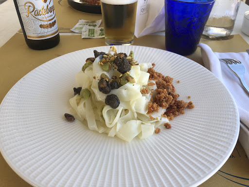 Read moreWe came here because according to google maps this was one of the places along this beachline where they provided gluten free options. Upon arrival they immediately said it would be difficult, but told us to look at the menu. It had allergens annoted, but with gluten and lactose intolerance there are very very little options. (They also didnt ask how the steak should be prepared. There was only one server who spoke some words english. The food was pretty decent, but when having to deal with multiple allergens, it's a easier option to go across the street. You won't be eating on the beach, but they seemingly had glutenfree pasta and soymilk...