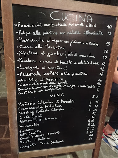 Read moreLocale in posizione suggestiva a Senigallia, si propone come enoteca con un semplice menù (preparato dal ristorante dello stesso proprietario), con menù esposto su lavagna... Pur non avendo prenotato, abbiamo trovato posto, anche basandosi sulle nostre preferenze il cameriere ci ha consigliato un vino marchigiano da accompagnare alle portate (ci ha anche detto quali erano semplici "stuzzichini" e quali più sostanziose)... Abbiamo provato le cozze, le lasagne con ragù di mare, due dolci e due calici di Verdicchio (totale 40€). Non si tratta di un ristorante elegante ma di un bistrot, dove gustare qualche vino accompagnato da diverse proposte del menù, in un ambiente tranquillo. A mio parere rapporto qualità prezzo ottimo, servizio gentile ed efficiente....
