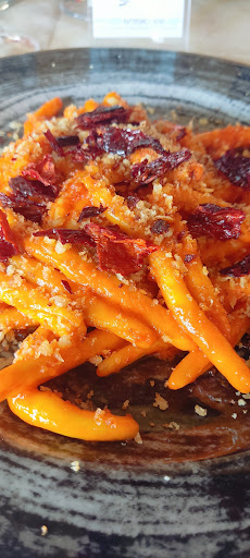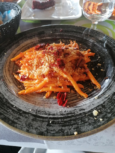 Oggi di ritorno dalla Diga ci siamo fermati nel paese e abbiamo trovato questo locale. È apparentemente un bar/pasticceria ma in realtà hanno anche la cucina. Ovviamente in una giornata assolata di agosto alle 12.30 c'eravamo solo noi, ma ci hanno preparato un antipasto vegetariano con buonissimi formaggi locali ed una pasta alla crema di peperoni con peperoni cruschi sbriciolati che era fantastica!!!! Abbiamo pranzato fuori sotto il patio e devi dire che è molto carino e si stava bene. Ottimo servizio, prezzi onesti e cibo buonissimo! Assolutamente...