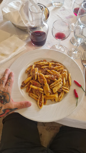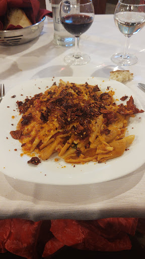 Read moreRistorante un po datato pulito gentili ma furbetti capendo che eravamo lì di passaggio hanno esagerato con il prezzo , qualità degli antipasti molto discutibile abbiamo preso antipasto per 1 salumi da capire la qualità ,nella media ,focaccina fredda gommosa ,peperone crusco morbido e no croccante insomma da dimenticare, lo spezzatino cosi decantato senza lode e senza infamia, a casa lo faccio meglio salsiccia passabile, vino della.casa nulla dicche ,dolce normale ,nell insieme. Abbiamo pagato antipasto per 1 spezzatino per 1 ,salsiccia per 1 ,dolce per 1 ,vino della casa 1 litro il tutto per 50 euro il che veramente da rapina , però...