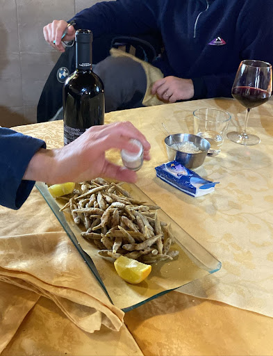 While walking the Via Francigena decided to stop and have a morning coffee. Big mistake. Two capicinos and one small piec of cake ... 8 Euros. Way overcharged for a very typical morning snack. Plus besides being the only people in the place they did not seem to care, took forever for the poor quality capicinos, and the place where we were sitting was dirty ( tabletops/floors) plus chickens waking through and up on our tile.