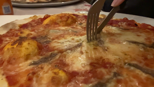 Cibo molto discutibile, antipasto di verdure grigliate ancora surgelate con il ghiaccio dentro, rimandate indietro e scaldate al microonde (cameriera molto gentile e disponibile, unica nota positiva) Su tre pizze una era assolutamente immangiabile. Pizza con "verdure di stagione" (cit. testuale dal loro menù) dentro c'erano carciofini sott'aceto (!!!) e mais in scatola! (che non è neanche una verdura, ma un cereale) Chiesto il prosciutto crudo in aggiunta, ci hanno messo il prosciutto cotto, che non é stato sostituito nonostante le lamentele ed é stato fatto pagare a parte in aggiunta!! Su un'altra pizza nella quale é stato chiesto di togliere 3 ingredienti (personalizzazione consentita dslla pizzeria) e di sostituirne uno, quello in sostituzione é stato fatto pagare a parte in aggiunta!! La titolare é una signora estremamente ignorante e maleducata, priva di ogni professionalità. Conto assolutamente spropositato per la qualità ed il trattamento ricevuto. Unico aspetto positivo le cameriere gentili, educate e disponibili (a differenza della titolare. Non ci metterò mai più piede e la...