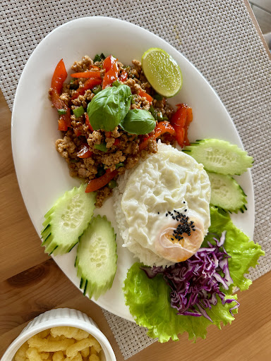 Il cibo è squisito. Ho mangiato Pad Ka Prao e Tom Yum ed entrambi avevano praticamente lo stesso sapore che si può trovare in Thailandia. Ho anche chiesto che il Tom Yum mi fosse servito piccante come in Thailandia e così è stato fatto. Sono stato felicissimo. Se l'obiettivo è mangiare thai di alta qualità, questo è senza dubbio il posto giusto.