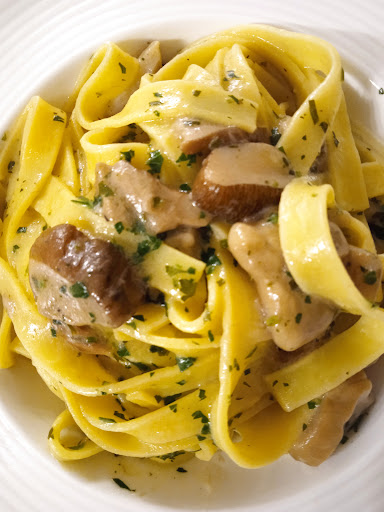 Eppure, come in ogni corte, non manca il tradimento: le pappardelle ai funghi, alleate infedeli del sovrano in esilio, si presentarono con pasta plebea, troppo modesta per reggere il blasone del fungo. Non cattive, no, ma chiaramente tese a minarne l’onore per restituire gloria al tagliere e alle frittelle.