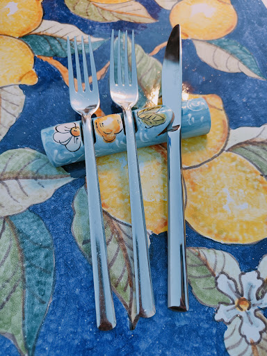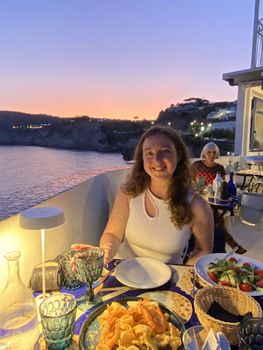 Menu: This was an exceptional culinary encounter and the best food we tasted on our 2 weeks Italy trip so far. We started with mussels and a thuna carpaccio on salad. Both dishes were very fresh in taste. As a main we had pasta with local fish & cherry tomatoes and spaghetti vongole, both delicious and beautifully presented. With it, we had a small bottle of local wine - very fruity and refreshing - and most likely one of the best views one can get in a restaurant.
