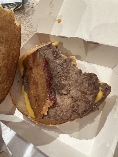 ย ย ย Read moreGot a bacon burger deal using the McDonaldโs app but the food was a bit sadโฆ Ate a bite before realising that there was only 1 bacon strip ๐ ๐ Fries were alright.