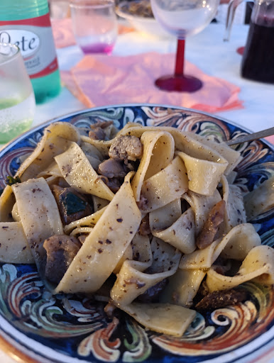 Abbiamo preso un antipasto diviso due con prodotti tipici che non erano né tipici né tanto meno freschi. Due secondi: tre polpette che non avrei dato nemmeno al mio cane, accompagnate da una salsina dal contenuto misterioso e dal sapore vomitevole (dal menù: funghi). L'altro secondo non era male finché non ho trovato un pelo nel contorno (patate al forno). Dolce: "crostata fatta in casa" vi assicuro che era una crostata di quelle che si comprano al supermercato, riscaldata e fatta passare per tale. Pane di almeno 1 settimana. Ciliegina sulla torta: il cameriere nostalgico del Fascismo.