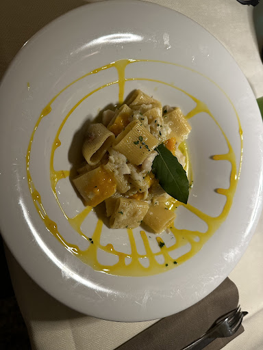 For a nice pricy place, food and serving do not completely stand on the same level. It has great potential though. First off, I strongly recommend placing a few street signs that indicate the entry. When we followed Google Maps, unfortunately we were guided to one of the closed gates I immagine. We ended up circling around to try again until we found the parking lot. Therefore we were late to our dinner reservations. So we waited outside for a table to get freed, without prossecco di benvenuto which I personally expect from a fancy place. A few minutes later we were accompanied to a table between an entryway, kitchen and a cash register. I was pretty amazed that we didn't even feel the flow of people around us, so the positioning of tables is actually really well done. The staff is a bit overwhelmed, they do good but need some extra personnel. I ate standard toscan antipasto which was bland, then a first course that was a risotto with a fancy name on the menu. Strong flavored, it filled me up quickly, but it was a really good risotto! Glass of Merlot was enjoyable, not alarmed about the wine sediment, it's perfectly fine. Forgot to visit the restrooms. Ps. Red sauce kiddy pasta should be medium size bite, not paccheri. I had to feed my toddler then...