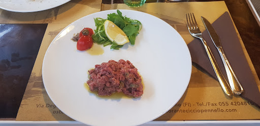 Read moreSiamo venuti più volte con amici a mangiare da Ciccio Pennello e ci siamo trovati sempre molto bene devo dire. Ovviamente è una trattoria di ottimo livello adatta principalmente per amanti della carne e dei piatti tipici toscani ma, anche per chi è vegano come me si possono trovare valide alternative. Infatti ci siamo lasciati deliziare più volte da funghi, bruschette di pomodoro e primi piatti con verdure o funghi stessi. Stavolta le cappelle di funghi erano piene d'acqua e senza sapore probabilmente per un problema del fornitore, fatto notare più volte alla cameriera per correttezza perché non è proprio trattoria da 20 euro (soprattutto se si prende un buon vino e la scelta è davvero ampia e di qualità). Magari mi sarei aspettato di ricevere un piatto alternativo invece niente fino alla cassa dove abbiamo nuovamente fatto notare questa cosa e, con molta attenzione al cliente, ci è stato scontata mezza comanda dei funghi alla griglia. Purtroppo non abbiamo potuto non notare l'immagine dietro il bancone con una frase firmata "Mussolini"... Pensiamo sia davvero fuori luogo e sarebbe bene non mostrare certe cose visto che rimandano ad un periodo molto buio della storia italiana. Grazie di tutto Ciccio Pennello ma con oggi penso che non ci...