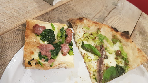 Read moreIncuriosito dalle buone recensioni, anche di siti che trattano food, ho deciso di provare questa pizzeria a taglio / da asporto. Il locale prepara pizze in teglia, solo il mercoledì in pala (le classiche pizze rotonde, che non ho provato), con una farina che si presta ad una doppia cottura, in modo da poter finire la cottura a casa oppure, se richiesto o se decidiamo di mangiare nel locale, viene fatta dalla pizzeria stessa. Ci sono tavoli self service per consumare quanto ordinato e la selezione di birre artigianali è ampia e di buona qualità. Al banco ordiniamo i pezzi di pizza, 3/4 a testa, serviti tagliati a metà, sono sufficienti per un pasto. La scelta presenta abbinamenti insoliti, con ingredienti buoni, ed offre ampia scelta. A mio giudizio, avendo provato numerosi gusti, la sensazione è quella di un prodotto buono, ma in cui il sapore dell'impasto, per il tipo di lavorazione, prevale quasi sempre su quello della farcitura, la croccantezza sembra affievolire il sapore dei vari ingredienti usati. Il servizio è neutro, il personale non spicca per simpatia, nessun sorriso, ma fa il lavoro con educazione. Il prezzo è un po' più alto della media, giustificato in parte dagli...