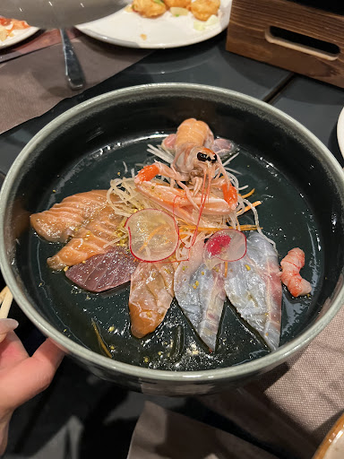 Dopo qualche mese di frequentazione, ci sono già stato tante e tante volte, devo onestamente modificare il mio giudizio che era un po' troppo severo, non se lo meritano. Ci saranno circa 250 posti seduti (troppi) con bei tavoli grandi e sedute comodissime, ma c'è un po' di kaos sia per gli avventori, chiassosi e maleducati, sia per l'intensa attività di almeno 20 fra camerieri e inservienti, che non ti fanno attendere il piatto, ma si perde quella tranquillità che in un ristorante giapponese si cerca e si dovrebbe trovare. Questo è davvero un peccato.