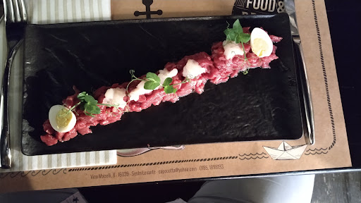 i ordered the fish tartar which was four different raw fishes without salt, lemon or anything. just finely chopped fish and shellfish. no texture. no taste except for the fattyness of the fish. didnt finish the plate by far. felt...
