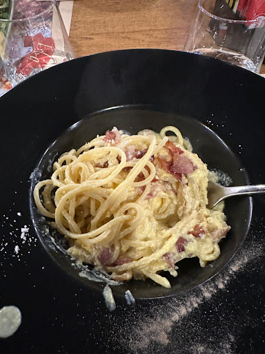 In the picture: a carbonara pasta we got there (which was good) Unfortunately no pictures of the...