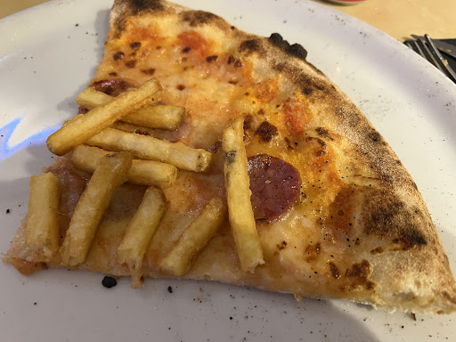 Sono stata in questa pizzeria qualche settimana fa , piccola, piccola, sta al primo piano di una "casa" . Ci staranno al massimo 10 tavoli e anche meno . Il posto è semplice e carino, la pizza è buonissima, buono anche il servizio. Pizze particolari con vari tipi di impasto. Ovviamente la prenotazione è consigliata ma fortunatamente c'è anche il servizio d asporto. La nota stonata di questa pizzeria è che essendo molto piccola vai via con gli abiti con odore di fritto. Prezzi nella media e buon servizio. Comunque la consiglio ...