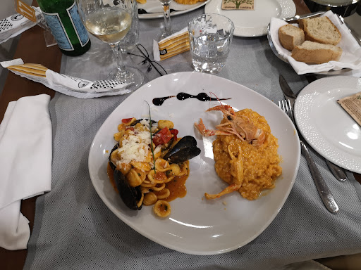 Excellent evening. I had already been here but I gave it another try before writing a review (the first time I was positively impressed). Service tonight wasn't at the top: probably the young waiter wasn't well prepared but the risotto served was at least 8 out of 10 stars. Delicious. Orecchiette weren't that good: far too many empty mussels and the pecorino cheese over the pasta was way too aggressive for the mussels. Just to clear the hospital corners: I don't dislike cheese over fish but they didn't manage to handle the salt. Overall I will give it 5 stars anyway for the amazing "risotto con scampi e succo d'arancia" (shrimps risotto with orange juice). Absolutely reasonable price: a main course, a dessert, water and a bottle of an honest white wine (La Scolca Gavi DOCG) for 33.5 euros. Reservation strongly suggested. I will surely...