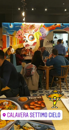 Read moreSiamo passati per delle commissioni dal centro commerciale settimo cielo, giunta l'ora di pranzo ci siamo recati nell'area dedicata alla varie tipologie di ristoranti e abbiamo deciso di provare il Calavera, un ristorante messicano molto bello con location pertinente al tema Messico. Abbiamo ordinato dei menù bambini e menù pranzo cercando di assaggiare più specialità, e devo dire che era tutto molto buono ben curato e con un'attenzione verso il cliente eccezionale. Tutto molto bello e coerente con il posto, in più posso dire che noi essendo una famiglia numerosa siamo stati trattati benissimo, la cameriera è stata gentilissima con i miei bimbi regalandoci a fine pranzo dei tatuaggi per bimbi. Per quanto riguarda la questione economica devo dire che siamo in fascia medio economica, basta usare gli strumenti a disposizione per risparmiare un pochino, vi consiglio di scaricare applicazioni Road House R word, e di registrarvi, questo vi permetterà di risparmiare molti soldi, ogni menu adulto il menu bimbi costa solo 1€, eccezionale dire, tutto questo grazie al gestore che me l'ha consigliata prima di presentarmi alla cassa risparmiando molti soldi, per fortuna esistono ancora persone molto oneste e umili! Vi raccomando andate a provarlo e fate girare la voce ne vale la pena...