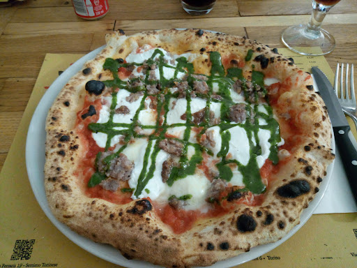 Nulla da dire sulla qualità del cibo ma zero professionalità da parte del personale! Partendo dal fatto che nessuno dei camerieri avesse un briciolo di simpatia e nessuno ha salutato avvicinandosi al tavolo, i menù ci sono stati letteralmente "lanciati" sul tavolo da una ragazza che si è subito defilata, le ordinazioni sono state prese da parte di un'altra senza dire una parola e successivamente al mio compagno è stata fatta una doccia con la birra da parte di un altro cameriere (per carità l'errore può farlo chiunque ma in questo caso il cameriere era proprio svogliato, ha posato sul tavolo le birre con modi poco garbati e per non fare il giro del tavolo voleva far passare l'altra birra sopra le teste dei clienti senza guardare e ovviamente gli è caduta!); a fatto accaduto si è limitato a chiedere scusa e a portare due pezzi di carta al mio compagno per asciugarsi dopodiché si è defilato e non l'abbiamo più visto! Peccato che il mio compagno fosse fradicio di birra e che ci fossero anche tavolo e sedia bagnati ma nessuno si è preoccupato di ciò. In più avevo ordinato una pizza ortolana senza peperoni ma ovviamente mi è arrivata con i peperoni! Al momento di pagare non era presente un titolare ma sempre la ragazza che ci aveva servito ai tavoli, la quale non ci ha chiesto se andava tutto bene come si dovrebbe fare; le abbiamo ricordato l'episodio della birra facendole capire che non era andato tutto bene ma lei ha fatto finta di cadere dal pero e di non aver visto nulla e visto che dovevamo pagare 52 euro dopo un po' di discussione ha solo detto:" va beh datemi 50 dai" quando come minimo doveva toglierci dal conto una birra! Io non sono una che pretende tanto dal servizio ma un minimo di buone maniere ci vuole! Per quanto mi riguarda non metterò più piede in...