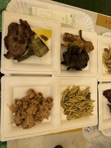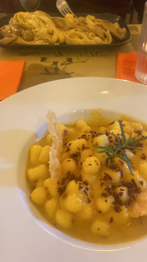 Read moreMangiato sotto agli ombrelloni all'esterno in un piccolo cortile in giornata piovosa. Carbonara con uovo pastorizzato lasciato semicrudo, con pochissimo pepe e zero pecorino, guanciale assente quasi del tutto. Chiediamo al cameriere se negli gnocchi alla sorrentina ci fosse passata di pomodoro o polpa, perché mia moglie coi diverticoli non può mangiarla. Ci assicura di si, ma poi quando arriva è piena di semini e bucce. Ridata indietro arriva una tagliata di pollo completamente bruciata con gusto talmente amaro da essere quasi immangiabile...esperienza da dimenticare. Due stelle di fiducia ai giovani che...
