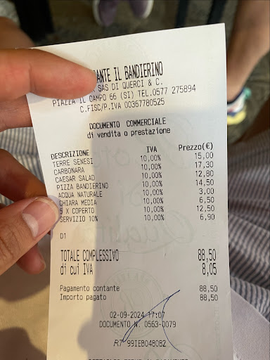 Read moreDuring our recent visit to Siena, we had the pleasure of dining at Il Bandierino. Situated with a perfect view over Piazza del Campo, we couldn't have chosen a better spot to enjoy the evening sun and the bustling atmosphere of the square.
