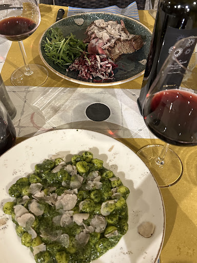 We ordered the Kilo? large T-bone steak and it was delicious. We also tried the Gnocchi (pesto I think) and OMG it was heavenly good. We talked to the couples on each side of us and all of them loved their food. The location of this restaurant is perfect and the staff is so nice = they make you feel like you are in the real heart of Italy.