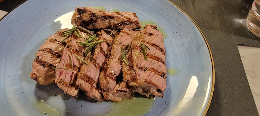 The issue I had was the main course, beef sirloin with olive oil and rosemary. Look at my plate- this alone was âŹ18. Very small portion size for that price with no side. I asked for medium-rare and it came to me RAW. As Gordon Ramsay would say, it was so raw that I could hear it moo. It even jiggled when I cut into it. Based off of the picture you wouldn't even guess it to be beef. It has the color of tuna... it looks anemic.