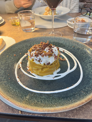 Read moreI find it is a unique restaurant. Definitely value for money. Right at the beginning they serve out of charge a small portion of food made of pomodore typical of the area so that you can try. Regarding the choice, they have very tasty plates. The people working there are very friendly and they try very hard to make you feel comfortable. They had the perfect white wine on glass for me and Iâm very picky. They are super flexible and my partner and me wanted to share a plate and they made it separate from the beginning. A plate that I thought could not be easily divided (a cream-purĂ©e) and with the most elegant presentation. The service is very nice and very educated. They have a terrace right outside where we were lucky to find a free spot and we had a really nice atmosphere. The pavement is uphill but they manage to the tables and chairs very comfortably. We ordered the yolk al quattre vents, meat (top right from the menu) and selection of cheese. I really recommend this place if you want to enjoy the food while feeling relaxed and enjoying the medieval...
