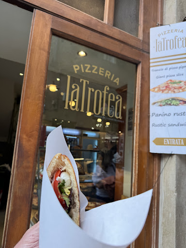 Read moreWe had finished lunch and were strolling through the city when we came upon La Trofea, my friend who is a bread maker here in the US and me, a restaurant owner, were drawn in by the incredible aromas and the pizzas showcase. The owner behind the counter was outgoing, friendly and welcoming to us. Even though we were full, we ordered 2 slices of pizza and the mortadella sandwich...they both were out of this world! Warm and the taste of coal fired I consumed mine instantly. So much flavor, freshness and warmth from the owner. Highly...