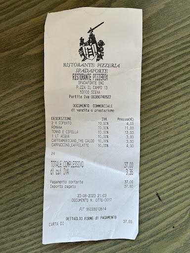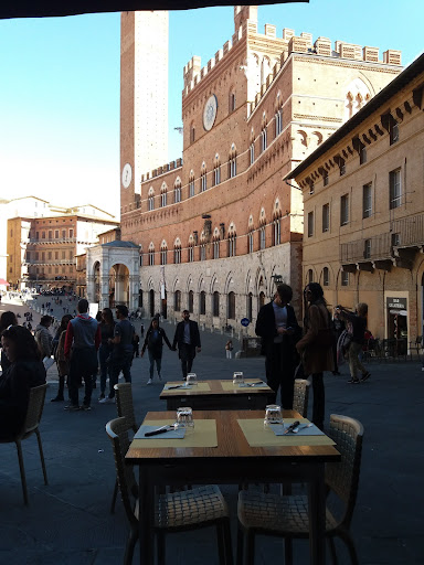 Read moreIl ristorante si affaccia sulla centralissima Piazza del Campo di Siena, al n. 13 ed è facile da trovare. Sui tavoli all'aperto, si gode di un panorama eccezionale, sulla Piazza di Siena dove si fa' il Palio e ricca di monumenti (Palazzo del Comune, Torre del Mangia, Cappella di Piazza ed altri). Dispone di molti posti e, col bel tempo, si può mangiare all'aperto. Meglio prenotare, altrimenti si rischia di non trovare posto. Serve specialità sia toscane che nazionali. Personale cortese e disponibile, veloce per quanto possibile. Le porzioni sono discretamente abbondanti. Ottimi gli antipasti di affettato toscano, buoni i primi di pasta sia di mare (tagliatelle zucchine e gamberetti, linguine allo scoglio) che di terra (pici al cinghiale, pici ai funghi porcini, fusilli). Meglio andare sugli ottimi arrosti di carne (costata di manzo, cinghiale, ossobuco)che sul pesce (fritto di baccalà appena discreto, fatto sulla friggitrice delle patate). Ottimi i ricciarelli e gli altri dolci tipici della zona. Per i prezzi va' premesso che il locale, solo per la sua locazione, non può essere in categoria economica. Un pranzo completo di primo, secondo, contorno e bevande (acqua e calice di vino) si attesta tra i 35-38 euro in base al pregio delle portate. Si può salire scegliendo piatti molto pregiati, come la bistecca alla fiorentina valutata a peso e vini tipici in bottiglia. Conviene sempre attenersi ai cibi ed ai prezzi indicati sul menù, chiedere piatti alternativi può significare portarsi anche sui 50-60...