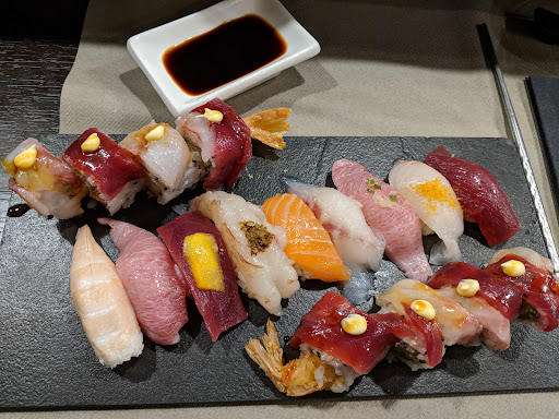 🇬🇧The most overpriced sushi I've ever eaten. Mediocre sushi. Uramakis are good, nigiri are pretty average, whilst the tempura rice wasn't very good. The rice should have arrived quite warm, but it wasn't at all. But the biggest problem is that, at this price, a premium service is usually expected. Quite frankly, you can't charge €70 for three tiny things and a bit of ginger on the side.