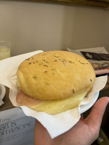 Read moreThe ham/ salami and cheese focaccia is well toasted and buttered, with a hint of olive oil and lightly salted bun, saltiness of ham and cheese is well balanced initially. The bread is thick and soft. The portion is generous, and price is reasonable (€4) for focaccia. However at the end, it got a bit too salty.