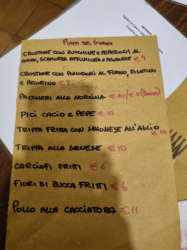 Read moreAndavo in questa osteria da anni, ma ogni volta è sempre stata peggio, al punto da non venirci per circa 6 mesi, ma ieri ci sono tornato... per l'ultima volta. Ci hanno fatto sedere alle 9:30 con altri 2 amici (potevano rifiutare), ci hanno portato l'antipasto con salumi e formaggi, che era ok, poca roba ma andava bene. Dopo nemmeno 5 minuti con l'antipasto in tavola, che quindi non avevamo ancora finito, ci hanno portato subito il primo, una carbonara veramente indegna di essere chiamata tale: la pasta è arrivata fredda, sciocca, uovo completamente insapore e con (non scherzo) 9 pezzi di guanciale di numero per tutte e 3 le porzioni, quindi 3 pezzetti ciascuno; e poi la porzione: veramente misera. Ma non è finita qui. Il vino della casa è senz'altro il peggiore che abbia mai assaggiato in ogni osteria di Siena, sia bianco che rosso, di cui in totale ne abbiamo preso 1,5 litri in 3, che, con 5 bicchieri, è riuscito a darmi il mal di stomaco per 2 ore stamani. Infine abbiamo preso un caffè ciascuno. Arrivato il momento di pagare siamo andati alla cassa e il cuoco ha detto: "20âŹ, il caffè ve lo offro io"; con quello che abbiamo mangiato e bevuto mi pare il minimo, ed è comunque troppo dato le misere porzioni che abbiamo mangiato, lasciando stare la qualitĂ ... e lasciamo anche stare che coi miei amici ci saremo venuti in totale piĂš di 20 volte, mai uno sconto. Siamo ragazzi ma non vuol dire che ci facciamo prendere in giro, un posto del genere può giusto andare bene per turisti stranieri abituati alla pasta giĂ pronta nei...