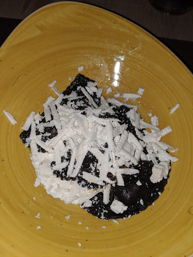 Dan het eten. In 1 woord, FANTASTISCH! Als voorafje kregen wij een blokje geitenkaas met daarop een crème van Citroen. Erg smaakvol. Vervolgens had mijn vriendin de pizza met rucola en ham en ik de pizza marinara besteld. Beide pizza’s waren voorzien van erg frisse en verse producten en dat merkte je terug in de kwaliteit van de pizza. De kwaliteit van het deeg, de saus, het vlees en de groenten was erg goed. Deze pizza’s zijn een echte rader. Bij mijn eten had ik een fles water en twee cola zero’s besteld. Mijn vriendin had de droge witte wijn van het huis en deze smaakte erg goed. Het was een zachte wijn en deze viel goed weg te drinken (anders dan de Nederlandse wijnen). Als dessert hadden wij de lava cake met een bolletje vanille-ijs. Erg smaakvol, lekker en vullend.