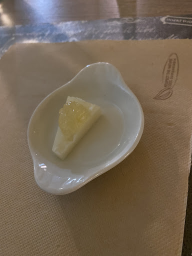 Wij werden welkom geheten door een heel vriendelijk gezelschap aan personeel. Wij hoefden hier nog niet onze ‘green pass’ te laten zien. Wij werden bij de ingang beneden begeleid door het gehele restaurant naar de zitplaatsen op het terras boven. Hier mochten wij plaats gaan nemen.