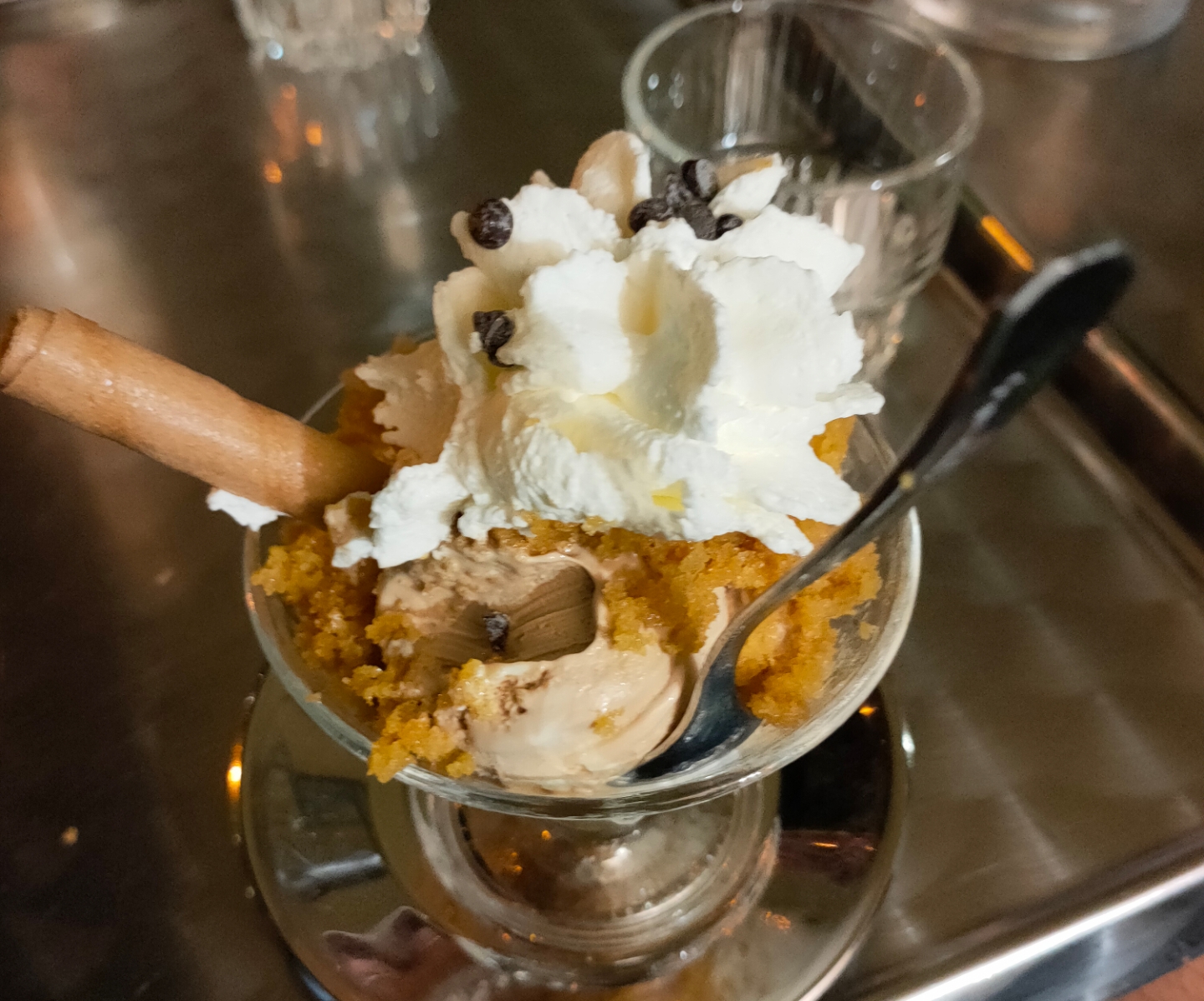 The variety of flavours, the service, the atmosphere and the agreeable prices. That's 4 out of 5... the serving size could be a little more because I ordered the maxi (biggest size) and it looked like nothing from the pictures. It didn't come in a fancy cup with fruit toppings, in fact they didn't have any toppings other than whipped cream. BUT everything was enough to warrant 4/5 stars, definitely recommend a visit if you're close by, otherwise any other gelateria...