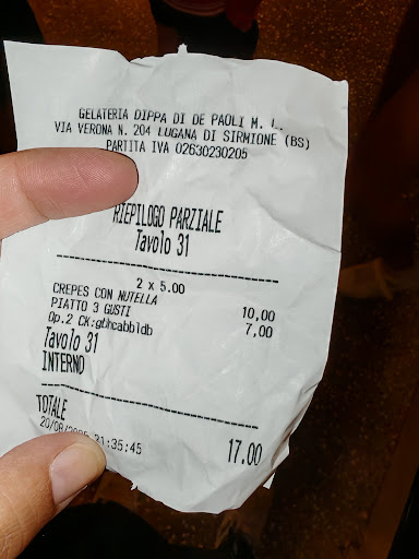 Read moreMetto 1 stella perché meno non posso. Personale scortese e antipatico. Chiediamo di sederci perché i bambini volevano le crepes e ci tengono a dirci per più volte che c'è il servizio al tavolo. Chiediamo 2 crepes e decidiamo di prendere 2 coni per noi. Non si può!!!! I coni non possono essere consumati al tavolo, nonostante avessimo già preso da mangiare per i bambini. Ci ritroviamo costretti a prendere un piattino misero con 3 palline di gelato per stare seduti con loro. 7 euro tre palline in un piatto senza nulla. La sala interna è sporca, piena di ragni e ragnatele. Il tavolo sulla quale ci siamo seduti era sporco e l ho dovuto pulire io. Ah! Le crepes erano crude e il gelato sapeva di acqua. Mai più!!!! No scontrino fiscale