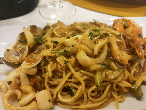 Read moreCOSA FUZIONA: Bel locale: arioso, con un'ampia veranda esterna coperta e ombreggiata, che lo rende piacevole nel periodo estivo. Cortile con tanti posti auto al coperto di una tettoia. Cordialità del personale. Menù con una variegata scelta di piatti soprattutto di mare, ma con qualche proposta anche per gli amanti della carne. Pochi dolci, ma buoni... in particolare una crema catalana da urlo!