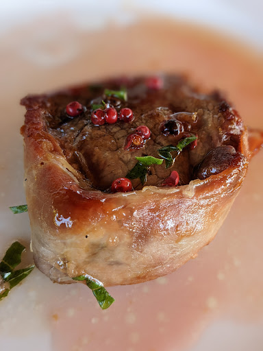 Read moreVisited the restaurant for a Friday night meal on a balmy summer evening. As the sunset over the beautiful hills and to the sound of the gently tinkling fountain, we were treated to a series of wonderful dishes. Local meat and cheese antipasti. Delicious grilled aubergine/cheese/tomato slices. A stunning pearl barley salad with goji and mirelle. Tempura courgette flowers, aubergine, pepper and apple. Handmade ravioli with ricotta and courgette flowers again. Finally, a choice of lamb, pork or fish. All washed down with a delightful local Vino Rosso. Whether veggie or carne, and for all ages, a fantastic experience with a delightful and attentive hostess. Could not recommend more highly...and the value? Outstanding. Starve yourself before, and...