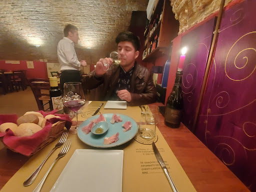 Read moreBellissimo locale con volte in mattoncini, i camerieri sono molto gentili e disponibili, non sono stato molto soddisfatto delle pietanze, premetto che tutto viene servito in modo elegante, non ho capito perchè gli antipasti sono stati serviti su vassoi quando per il vino hanno cambiato 3 se non 4 volte i bicchieri, tanto valeva servire l'antipasto ad ogni singola persona così da dare un servizio completo. I salumi di per se non li ho trovati saporiti, solo la mortadella, alcune persone non avevano capito che il salame era al tartufo! Come primo un piatto di tagliolini al tartufo un po anonimi, il sapore non ha convinto solo me, migliorabile, come secondo lo stinco di maialino da latte....io non sono amante di tale pezzatura, del maiale c'è di molto meglio mi astengo dal giudizio, la persona accanto a me ha ripetuto 'buono buono' per 4 volte...la carne era molto morbida, si è staccata dall'osso solo a guardarla, il contorno di patate al forno buone. Come dolce è stato scelto (non da me) un gelato al torrone ? Nicciolato ? Non saprei proprio, mi sembrava di masticare la plastica per la consistenza dei pezzetti di qualcosa al suo interno. Perdonatemi ma io il gelato me lo vado a comprare in gelateria, son gusti. Fosse per me abolirei i dolci industriali nei locali, solo fatti in loco. I prezzi non saprei ma sicuramente sul medio alto data la posizione del locale e del suo stile. P.s. L'altra tavolata ha ordinato il tiramisù...peccato non averlo mangiato...solo con gli occhi! Il prossimo week end me lo faccio e melo mangio, non sono ammesse...