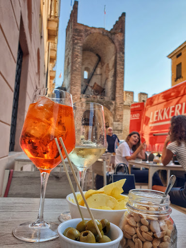 Locale al interno delle mura di Soave, servizio anche decente..l’unico problema è la maleducazione da parte del personale…ordinato due Pina Colada, nel momento in cui ho sorseggiato il drink sapeva totalmente di rum totalmente diverso dal Pina colada..è saltato richiesto al personale se era possibile allungarlo dopo 20 minuti d’attesa e richiesto..la mia ragazza ( fatto barista e completato il corso di studi alberghiero) si è alzata per chiedere se poteva essere allungato giustamente dicendogli che il cocktail sapeva totalmente di rum…la barista con tutta arroganza gli ha chiesto la ricetta del drink pensando che lei non rispondesse , invece è successo totalmente il contrario visto che grazie al percorso di studio gli ha saputo dire la ricetta esatta … dopo questo scatto d’arroganza e aver fatto una figuraccia alla fine i drink sono stati rifatti.Valutate voi ma la mia esperienza è sta pessima dopo l’arroganza del personale e l’inesperienza...