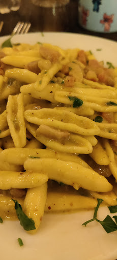 Das helle modern eingerichtete Restaurant mit Straßenterrasse im Zentrum von Solarino wirbt mit frischer schnörkelloser Regionalküche. Diesem Anspruch wird der sympathische Koch und Besitzer in jeder Hinsicht gerecht. Er berät die Gäste freundlich bei der Auswahl der Gerichte und erklärt die Zubereitung der Speisen. Die wechselnde Menükarte bietet eine Auswahl an regionalen Gerichten, die ausnahmslos frisch zubereitet werden - Sie können den Koch in der offenen Küche dabei beobachten. Die Preisgestaltung ist erfreulich günstig - kein Vergleich zu den touristenverwöhnten Restaurants in Syrakus. Wir haben fantastisch schmeckende Gnocchiette mit Möhren und Gorgonzola-Orangensoße probiert. Vorsicht! Die haben einen hohen Suchtfaktor. Auch die Orecchiette mit Pesto Trapanese waren ein leckeres Beispiel für sizilianische Landküche. Die Primi hatten bereits eine deutliche Sättigungswirkung. Die folgenden Secondi waren ebenfalls kulinarische Highlights: Die frischen Miesmuscheln aus Syrakus, die mit Knoblauch und Ingwer zubereitet wurden, waren die Besten, die wir als Muschelfreunde jemals probiert hatten: Größe, Konsistenz und Geschmack waren einfach sensationell! Der Klassiker Tagliata die Manzo wurde aus 21 Tage gereiftem zartem regionalem Rindfleisch vom Grill zubereitet. Fleischgenuß pur, der mit Olivenöl, Zitrone und grobem Meersalz perfektioniert wurde. Der Preis von 13,- Euro für 350 Gramm Premium-Fleisch war sehr günstig. Uns hat die Wohlfühlatmosphäre , der gastfreundliche Koch und die typische Landküche mit ihren puren Aromen so gut gefallen, daß wir in den nächsten Tagen erneut dieses untouristische Restaurant besuchen werden. Eine Empfehlung für Hotelgäste des nahen Golfresorts I Monasteri, die neben der Gourmetküche des Hotelrestaurants ehrliche und frische Landküche...