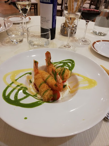 Read moreLocation bellissima,raffinata ed elegante. Servizio cortese ed impeccabile. Abbiamo mangiato gnocco fritto con crudo e giardiniera della casa,veramente ottimo,tagliolini al nero di seppia e a seguire gamberoni mia moglie ed io un filetto di vitello con pancetta e composta di mela,veramente spettacolari e ben presentati. I2 dolci buoni ma non indimenticabili. Unica nota :eravamo solo 2 coppie in una grande sala vuota,entrambe con un coupon da 79€....,nessun altro avventore,anche se nelle sale superiori ed indipendenti si festeggiava...