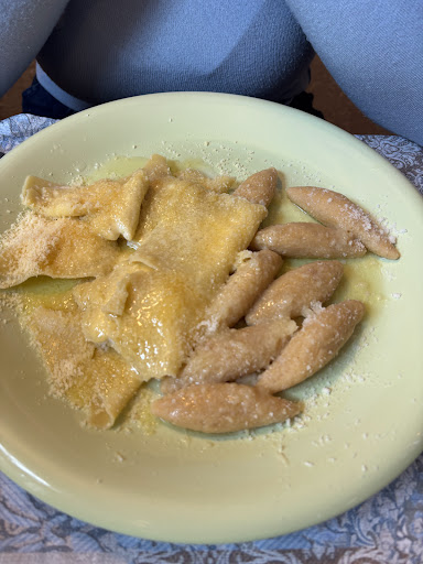 well, well, well as my last day in Italy I wanted to have pumpkin ravioli, typical Mantua dish , my favorite dish sunce I was a child. but I am cealiac!!!!. Then a friend suggested this beautiful trattoria in a very well know place, Solferino. I even lived there once and I never tried this place. Anyway BEST TORTELLI DI ZUCCA E CASONSEI EVER. THE BREAD IS EASLY THE BEST GF I EVER HAD and I tried stracotto d asino and carpaccio di cervo( meat dishes) and there were so delicious and meat so tender. I highly suggest this place for everybody around the area. I am very fussy with food, but I was so happy. They even had my favority dessert GF . I couldn't believe it. Elvezia cake with zabaione. I will be back next...