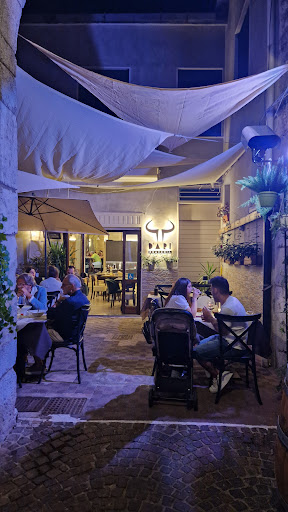 Trovasi nel centro storico del paese, molto ben illuminato all’esterno con luci natalizie. L’interno ricorda un po’ lo stile di alcuni ristornati caratteristici pugliesi in cui sono stato; una bici appesa al muro, ornamenti e illuminazioni rendono il pasto molto piacevole. Nonostante fosse un giorno di festa, non vi sono stati ritardi con il servizio, celere e preciso. Staff cortese e disponibile, il proprietario ci ha ben consigliato su quali prelibatezze da scegliere( che ho allegato come foto). Notevole la selezione di vini a disposizione e la vasta scelta di carni; fra l’altro, quella presa da noi era tenerissima!! Le pietanze in generale hanno un buon equilibrio di sapidità ed alcune dal tocco delicato. Elegante l’impiattamento . Prezzi nella media, forse rivedere un po’ quelli dei vini, leggermente più cari; per il resto molto consigliato, sarà sicuramente un piacevole...