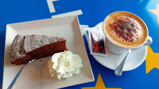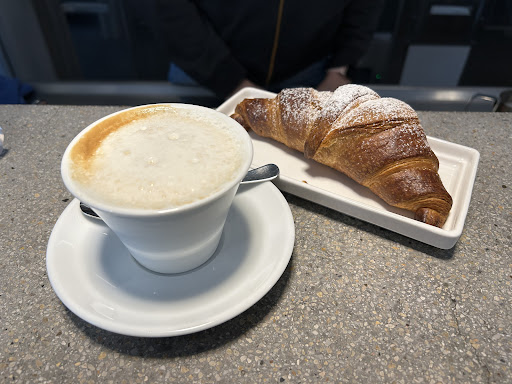 Had to recharge my electric rental car near the airport and the closest one was a block from this perfect place to wait. Great design, patio area, new, clean, with delicious snacks, coffee, and selection of beverages. Best part was the friendly staff & service… even got some free Italian language help. I’d come back even without needing a nearby charge!...